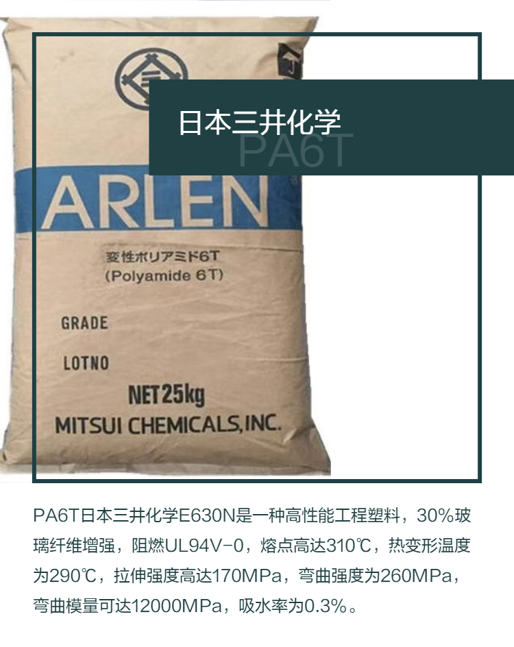 【PA6T日本三井化學(xué)E630N 30%玻纖增強(qiáng) 阻燃V-0 耐高溫310度 pa6t+gf30】是當(dāng)前工程塑料領(lǐng)域中備受關(guān)注的一款高性能材料,具備出色的綜合性能。本文將從材料性能、應(yīng)用領(lǐng)域、技術(shù)優(yōu)勢及選購建議等多個角度進(jìn)行詳細(xì)解讀,幫助讀者全面了解這一產(chǎn)品的價值及應(yīng)用潛力。