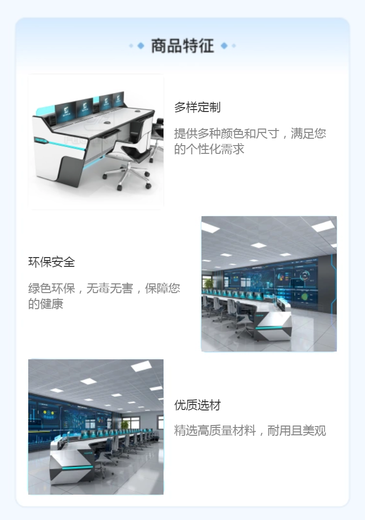 指揮調(diào)度臺(tái)則更注重信息的集中與調(diào)度的高效流轉(zhuǎn)。飛宸的調(diào)度臺(tái)通過(guò)合理的布局設(shè)計(jì),實(shí)現(xiàn)監(jiān)控屏幕和操作界面的無(wú)縫對(duì)接,提升事件處理的協(xié)調(diào)性與準(zhǔn)確率。其材料選用抗磨損、易清潔的表面,適合長(zhǎng)期高強(qiáng)度使用,保證耐用性和美觀性。